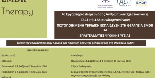 EMDR Therapy Πιστοποιημένη Υβριδική Εκπαίδευση Επαγγελματιών Ψυχικής Υγείας- ΕΔΑΣ & TACT HELLAS (Φθινόπωρο 2024)